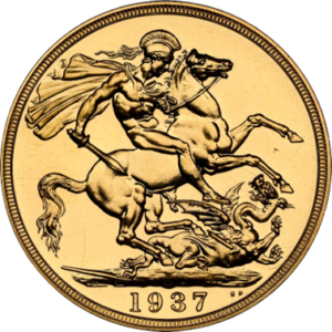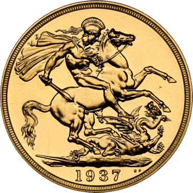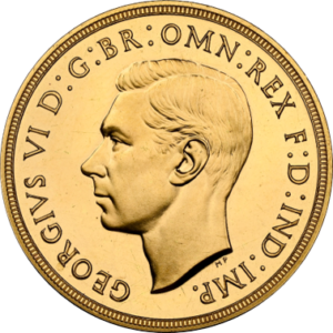 映画「英国王のスピーチ」でも取り上げられたジョージ6世の戴冠記念コインです。1895年にジョージ5世の次男として生まれたジョージ6世は兄エドワード8世がいた為、王室の次男として軍務に服していました。ジョージ5世崩御により兄エドワード8世が1936年に王位継承しますが、アメリカ出身のウォリス・シンプソンと駆け落ちに近い形で結婚し、エドワード8世はそのまま退位します。そのため、同年にジョージ6世は即位することとなりました。この経緯によりジョージ6世は、イギリス王室に対する国民の信頼が極めて低いときに、王位に就かねばなりませんでした。さらにその治世中、国民は戦争の困窮に耐え偲ばねばならず、その後大英帝国の威光はなくなっていきました。しかしながら、ジョージ6世は誠実な家庭人で、かつ責任感の強い国王であり、個人的な勇気を示すことによって、イギリス国王の信頼感を取り戻すことに成功しました。ジョージ6世の戴冠記念コインであるこのコインは、5ポンド・2ポンド・ソボレン・ハーフソボレンの4枚一組セットとして作られましたので、今回ご紹介のコインはそのセットの中の一枚ということになります。このコインの発行枚数には2パターンの説があり、5,501枚説と5,001枚説がありますが、イギリスカタログには5,001枚と記載されています。イギリス王室コインは世界で最も人気のコインシリーズであり、現在価格も高騰しつつ入手しづらいことから今のうちに入手したいコインです。