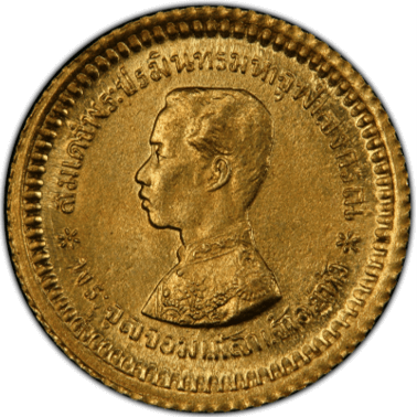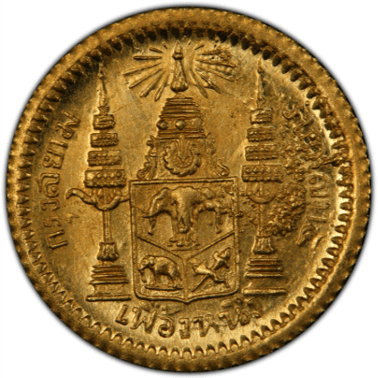 タイ ラーマ5世 (1868–1910) 1/8バーツ金貨 1876 FR-26 KM-Y-32b PCGS MS63(UNC)