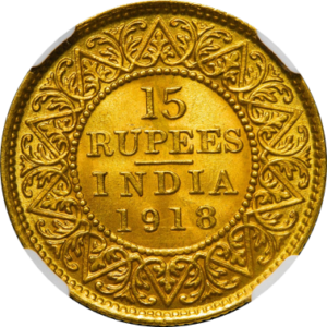 ホーム 商品一覧 英領インド ジョージ5世(1910-1936) 15ルピー金貨 1918(B) Fr-1608 KM-525 NGC MS65 (UNC/FDC)