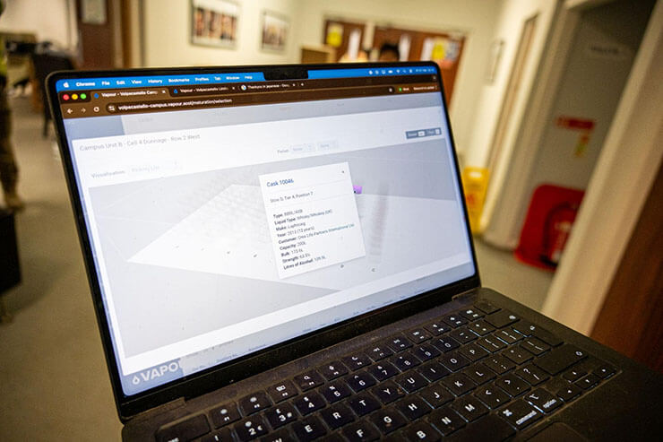 訪問した倉庫においては、樽の情報は専用のデジタル管理システムで一元管理されており、保管状況が正確に記録されていました。